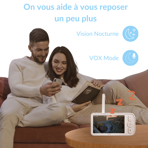 Le Purebebe FlexiView™ assure une vision nocturne claire et douce, sans lumière agressive pour les yeux de votre bébé. Avec le mode VOX intelligent, l’écran s’allume automatiquement au moindre son détecté, pour que vous puissiez dormir sereinement tout en restant attentif.